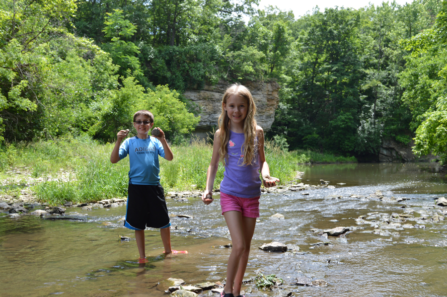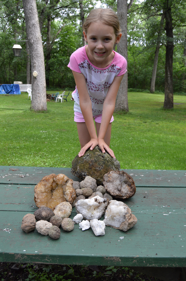 Imagine wading through a spring-fed steam, and finding a baseball-sized rock in the clear water. You crack it open to find it filled with crystallized quartz, knowing that the sparkling mineral has not seen the light of day in over a million years. Welcome to geode hunting. Geodes are geological treasures, formed millions of years ago as bubbles in molten lava. I recently took the family on a road trip to western Illinois, home to some of the best geode hunting in the country. We set up camp at Spring Lake Park, a public campground and reservoir located three miles north of Macomb. After we pitched the tent and set up camp, we headed down to the lake to catch some dinner. Fishing with minnows and small Cubbie jigs, we caught a limit of crappie from shore before a spectacular sunset. The next morning we headed 45 miles west to look for geodes in small streams feeding the Mississippi River. Different from other rocks, most geodes are perfectly round like a golfball or baseball, but big ones can be the size of a basketball or bigger. Searching the stream beds and banks, the kids got the “eye” for what we were looking for and found close to 40 geodes. There’s a small market for geodes, and rock collectors love them. But my kids just like to crack them open to look at the crystallized quartz “treasure” that each one holds. The best places the hunt geodes are in small, rocky streams that feed into the Mississippi River near the towns of Warsaw, Hamilton and Nauvoo Illinois. There are some nice hotels nearby, or other places to camp. Argyle Lake just 10 minutes west of Macomb is an Illinois State managed park and also has plenty of great camping and fishing. For the geode hunters looking to pitch camp closer to the geode hunting grounds, Hamilton Illinois is home to Wildcat Springs Park that has some nice campsites as well as a public pool. Despite a few rain showers, my kids had a blast. And the whole weekend cost about a tank of gas and couple nights camping, or around $100.