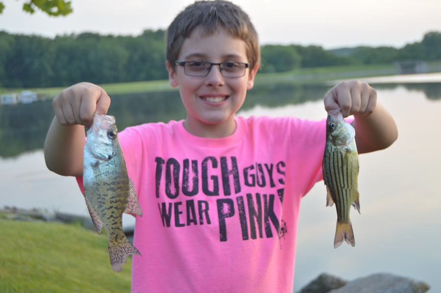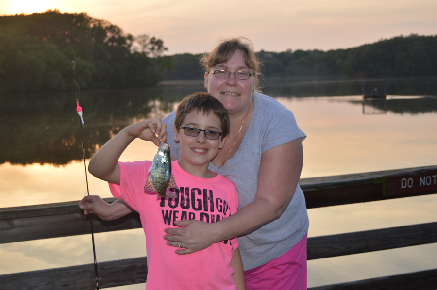 There’s a reason the bluegill is the Official Fish of the State of Illinois— there are billions of them and they are fun and easy to catch, which makes bluegill fishing a great summertime activity for kids. We recently fished some strip mine lakes in southern Will County and caught some giant “gills”. In June, the bluegills are on spawning beds located along shallow rocky or sandy shorelines, or on little humps of shallow water throughout the lake. We had success by drifting close enough to these rocky flats without spooking the fish, then casting jigs and working them across the rocks. I used a tiny sixteenth-ounce jig with a one-inch piece of night crawler. My son Nate was having luck simply using a small hook with crawler on a slip bobber. He would cast across the shallows and slowly reel the crawler through the rocks where big gills and redear sunfish would slam the bait. This is why bluegill fishing is such a great activity for kids. Rig them up with a simple hook and bobber with a little waxworm or tiny piece of night crawler, and they’re going to catch some fish. Will County Forest Preserve Lakes offer some excellent bluegill fishing. Most of them have easy-access from shore, or they have nice wooden docks and platforms. In summer, just look for weeds in the water and cast your bobber about a foot away from the edge. Bluegills also like to hang out under structure like docks or piers. If you get into some big gills, they really put up a nice fight, but not enough to pull your kid into the water. Parents can get a fishing license for around $15, and kids under 16 can fish for free. Throw in a night of camping and you have a cheap, fun weekend adventure.