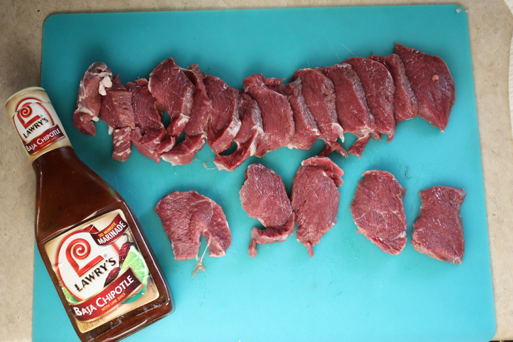 3. Marinate loin medallions in Lawry’s Baja Chipotle Marinade for a HALF HOUR (in a ziploc bag)