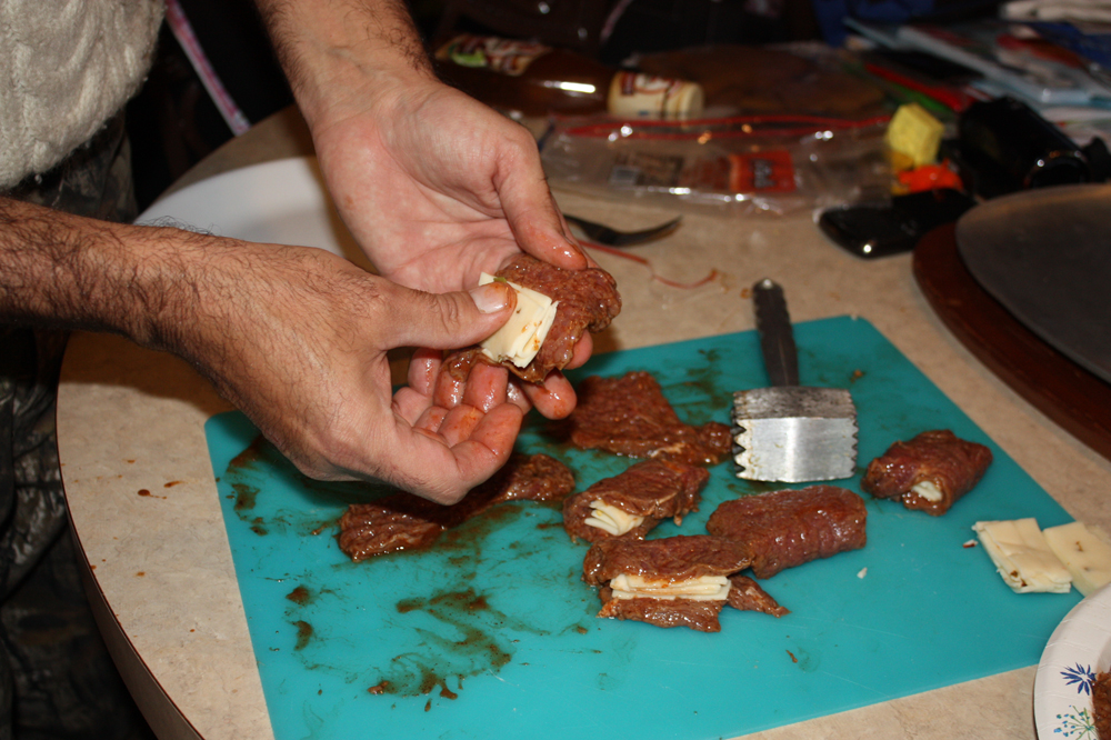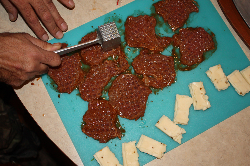 6. Wrap the tenderized loin around a chunk of pepperjack cheese