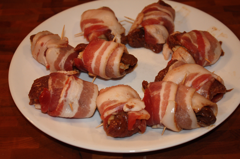 This easy-to-make appetizer will MELT IN YOUR MOUTH! It’s marinated deer loin, wrapped around a chunk of cheese, then wrapped again with bacon.