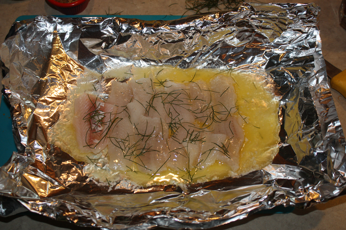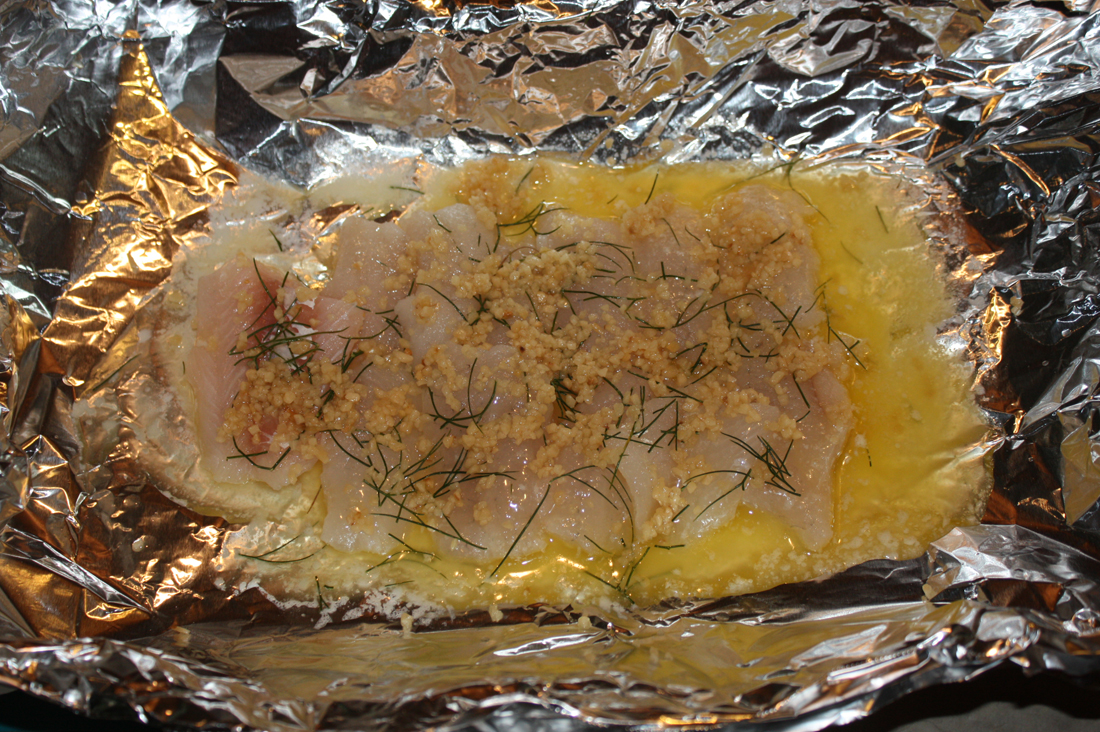 For my health-conscious readers, this is a good simple recipe for baked fish. Well, except for lots of butter, HA HA! Bag it and throw it on the grill alongside some deer burgers, and you have some tasty surf-n-turf. Enjoy!