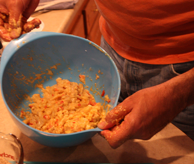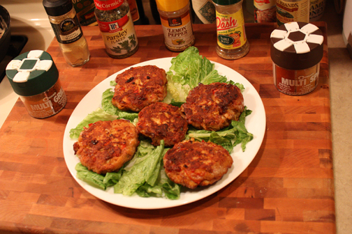 - Hand mix ingredients, then form patties (should make 4-5 patties)