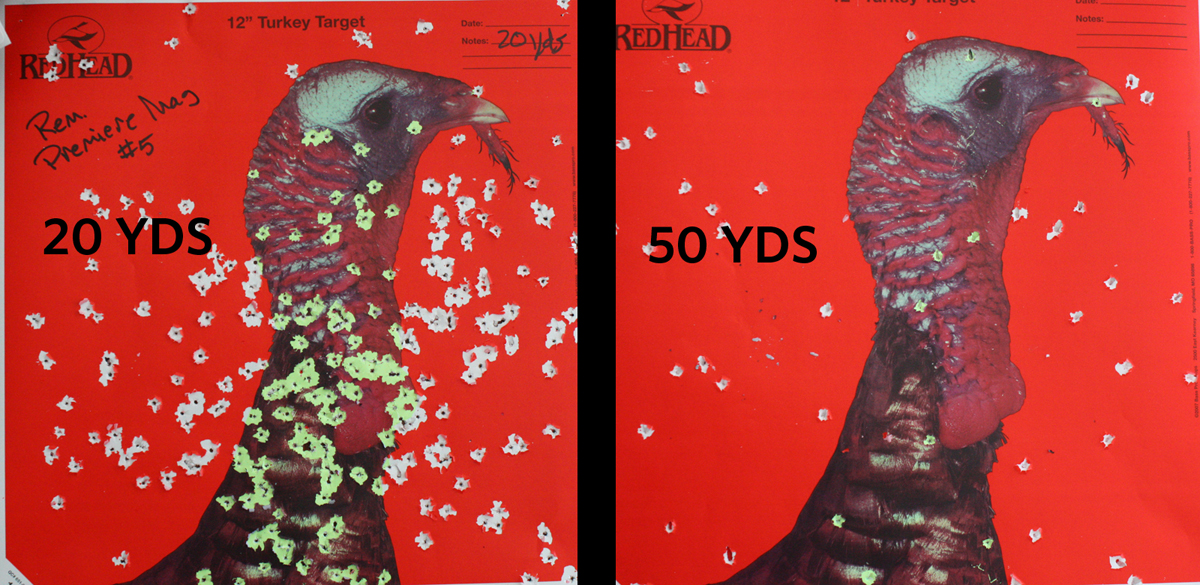 I test fired at ranges of 20, 35, and 50 yards using a Remington 870 Wingmaster pump with a 26” barrel and Super Full choke. The objective was to demonstrate the difference in the patterns at varying distances, and measure the number of lethal pellets.